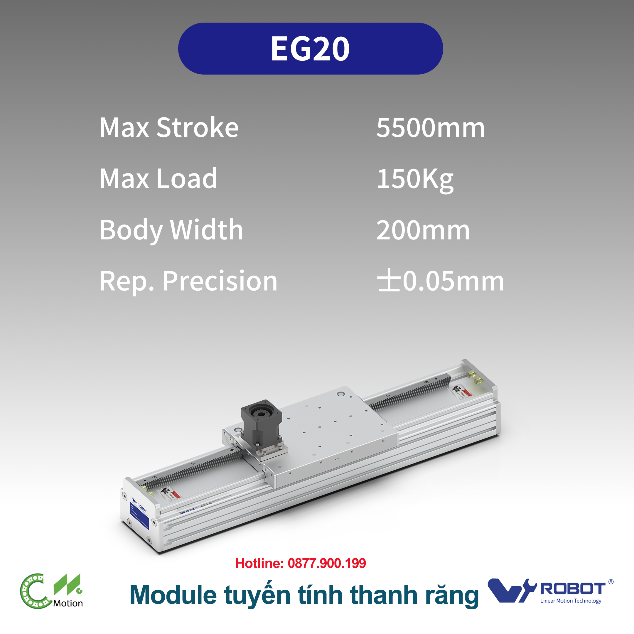 Model EG20 – BW 200 mm | Hành trình 5500 mm | Tải 150 kg