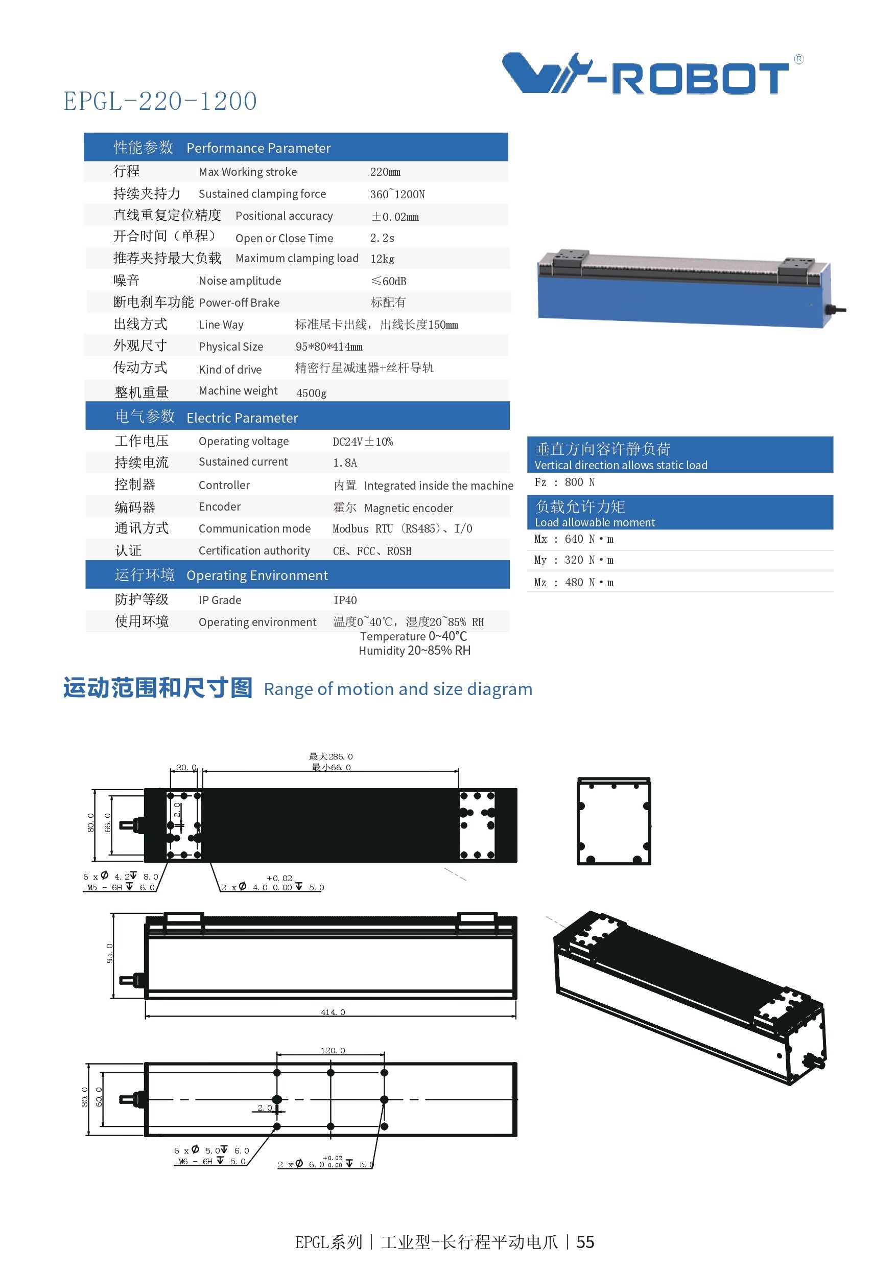 EPGL-200-1200 Module kẹp hành trình dài Dòng EPGL (Hành trình dài, Lực kẹp lớn)