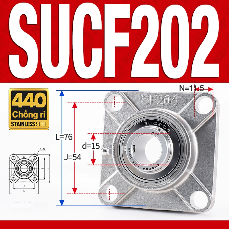 Gối đỡ vòng bi SUCF202 (Inox 440C - Đường kính trong 15 mm)