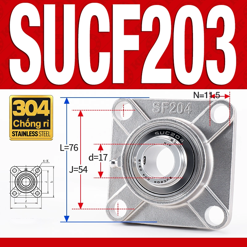 Gối đỡ vòng bi SUCF203 (Inox 304 - Đường kính trong 17 mm)