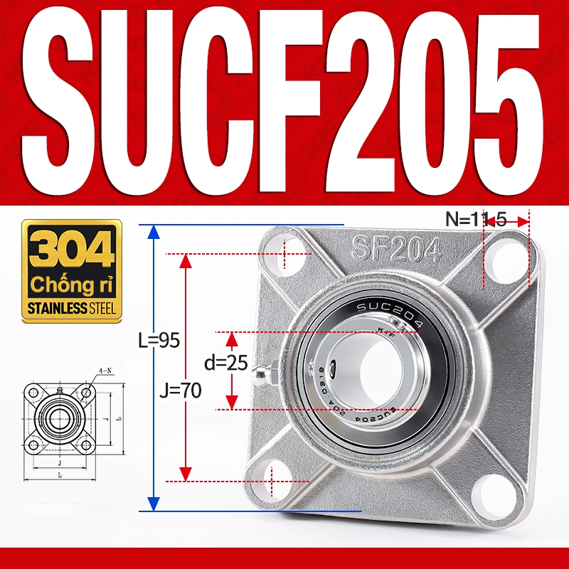 Gối đỡ vòng bi SUCF205 (Inox 304 - Đường kính trong 25 mm)