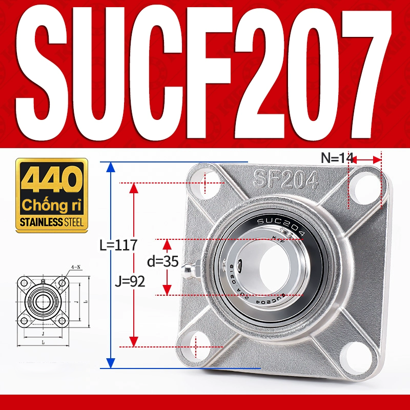 Gối đỡ vòng bi SUCF207 (Inox 440C – Đường kính trong 35 mm)