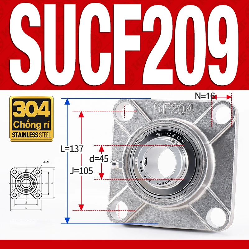 Gối đỡ vòng bi SUCF209 (Inox 304 - Đường kính trong 45 mm)