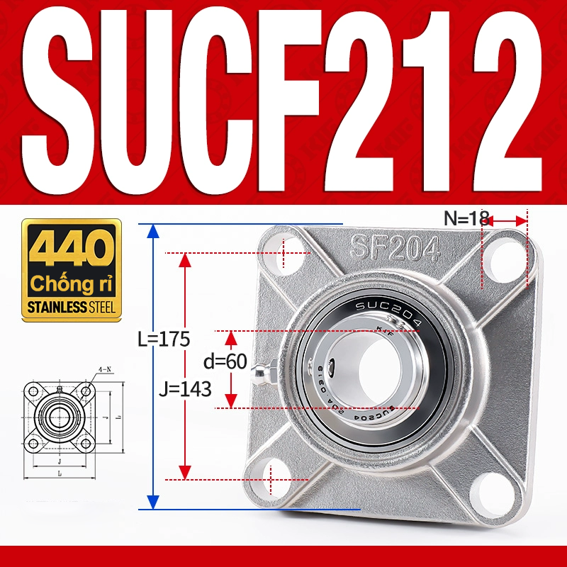 Đặt mua Gối đỡ vòng bi SUCF212 (Inox 440C - Đường kính trong 60 mm)
