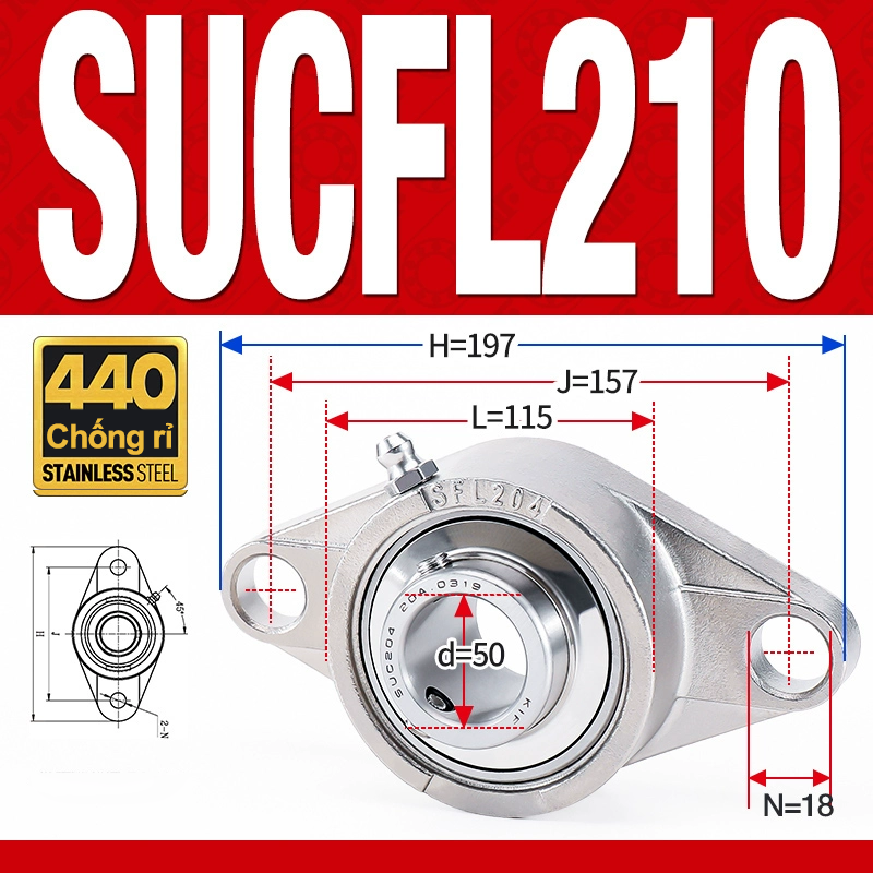 Gối đỡ vòng bi SUCFL210 (Inox 440C – Đường kính trong 50 mm)