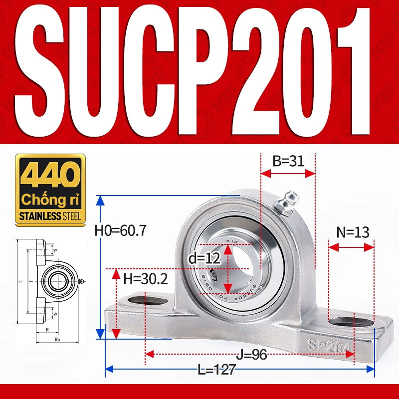 Đặt mua Gối đỡ vòng bi SUCP201 (Inox 440C - Đường kính trong 12 mm)