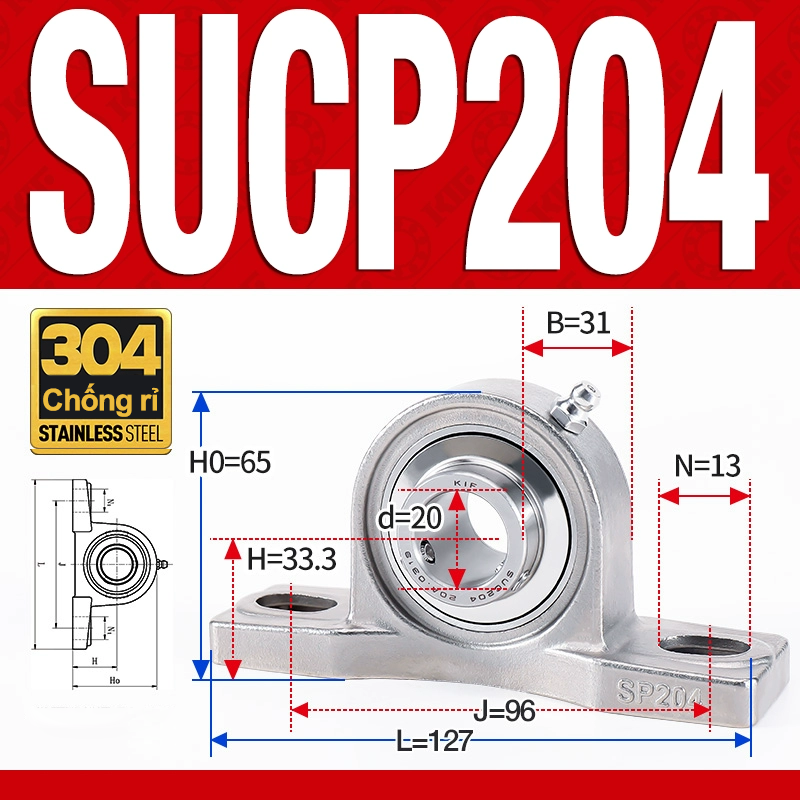 Gối đỡ vòng bi SUCP204 (Inox 304 - Đường kính trong 20 mm)