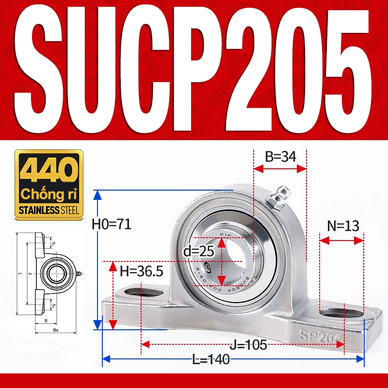 Gối đỡ vòng bi SUCP205 (Inox 440C - Đường kính trong 25 mm)