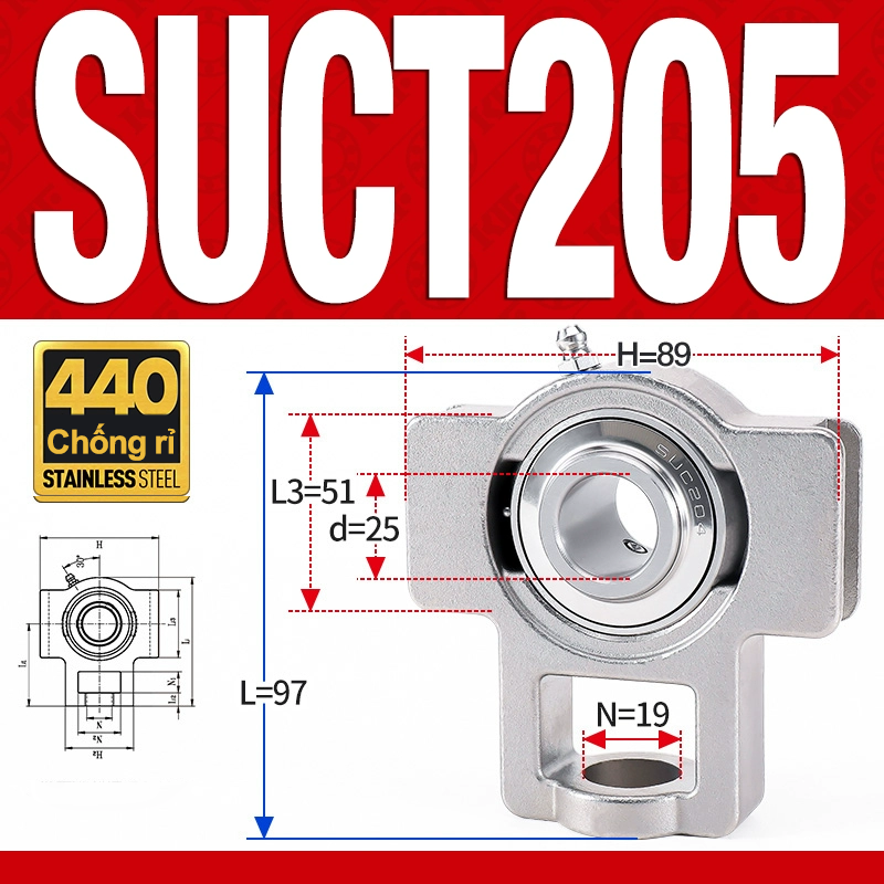 Gối đỡ vòng bi SUCT205 (Inox 440C - Đường kính trong 25 mm)