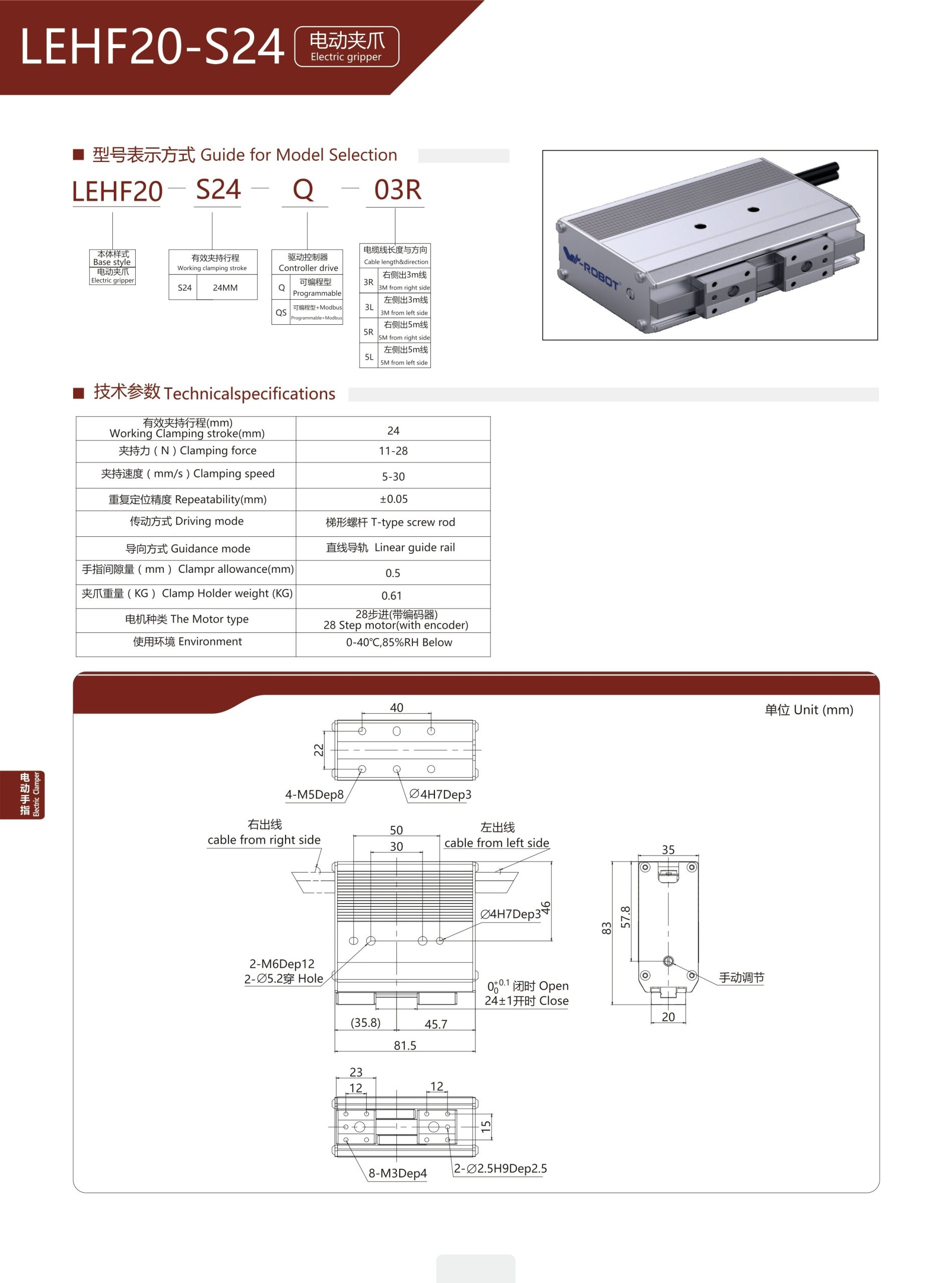 LEHF20-S24 Module kẹp Dòng LEF (Kẹp điện)