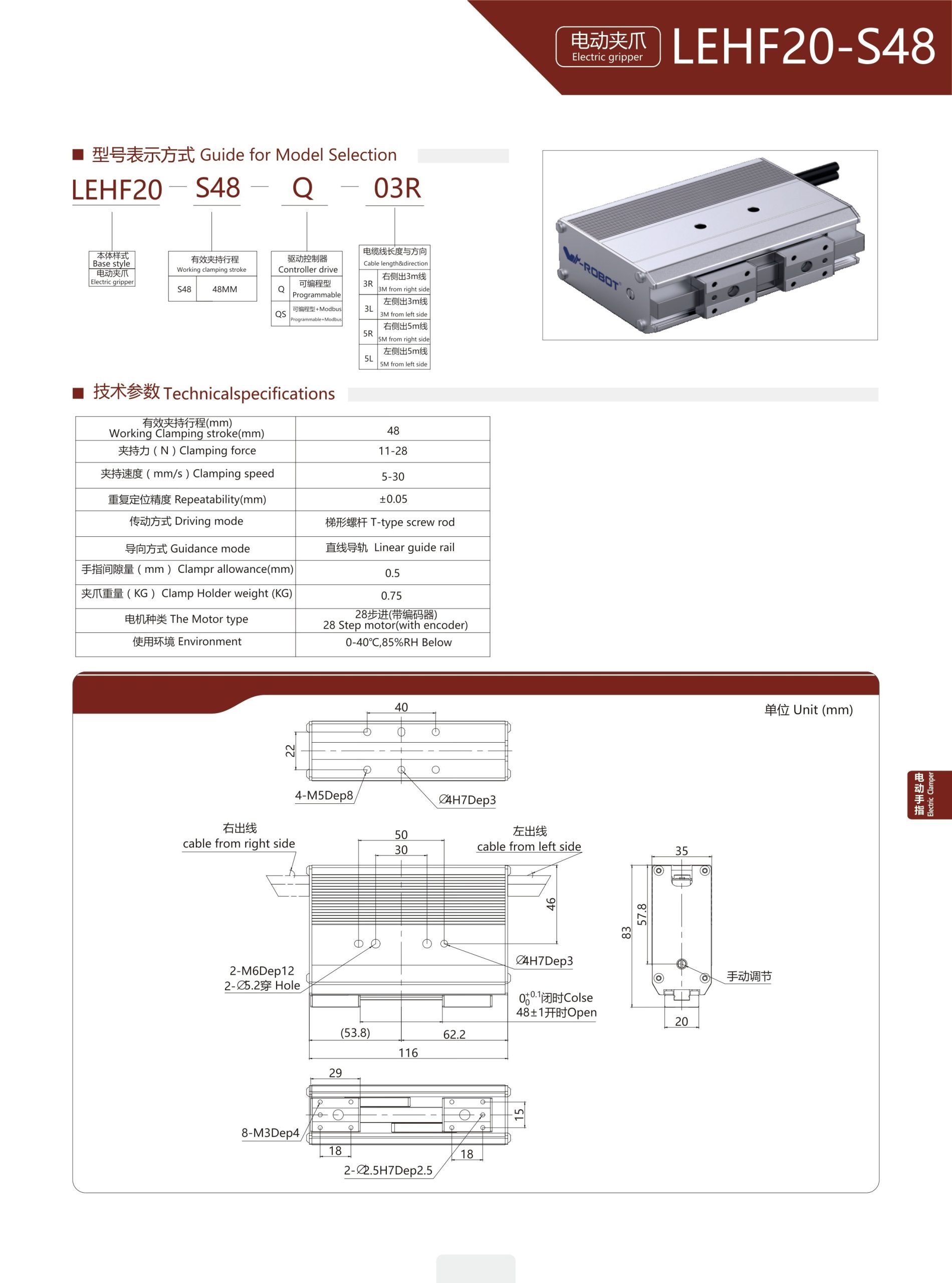 LEHF20-S48 Module kẹp Dòng LEF (Kẹp điện)