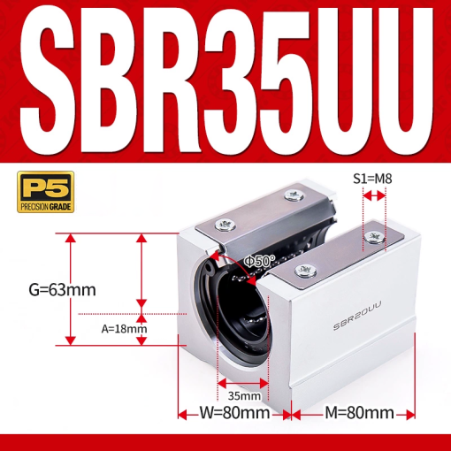 Con trượt SBR-UU (bi trượt cho ray SBR) là block trượt bi tuần hoàn, giúp chuyển động êm ái, ma sát thấp và độ chính xác cao. Sản phẩm có đủ mã SBR12UU, SBR16UU, SBR20UU, SBR25UU, SBR30UU, SBR35UU, SBR40UU, SBR50UU, tương thích với ray SBR12 – SBR50.