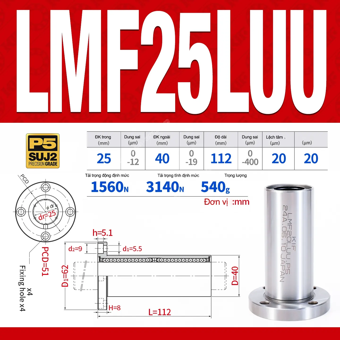 Con trượt tròn mặt bích tròn thân dài LMF25LUU (Bi trượt tròn)