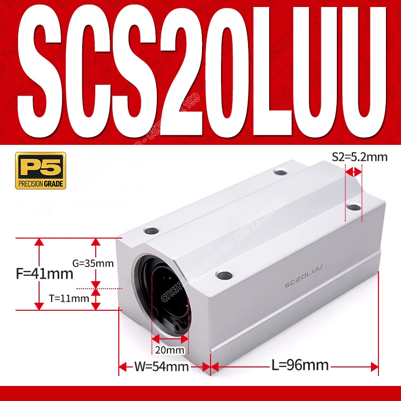 Con trượt tròn thân dài SCS20LUU (Gối trượt tròn mặt vuông)