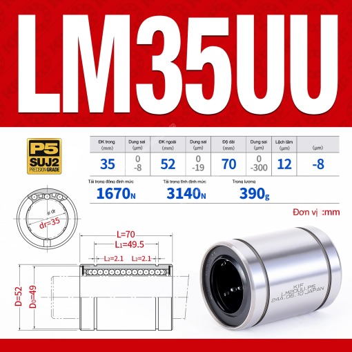 Con trượt tròn thân ngắn LM35UU (Bi trượt tròn)