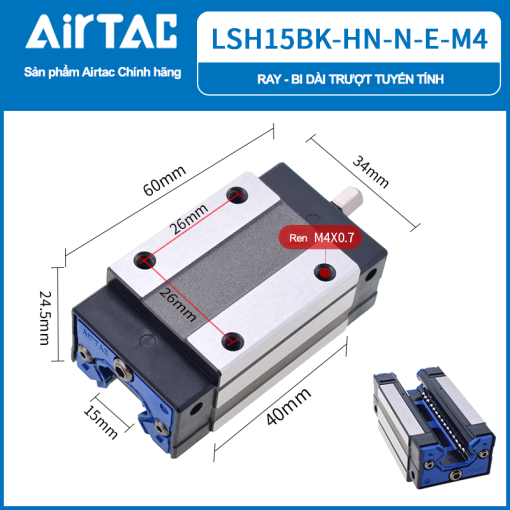 Con trượt vuông cao tải bản rộng tiêu chuẩn LSH15BK-F3N-N-E-M4 ( HGW15CC gá 2 chiều )