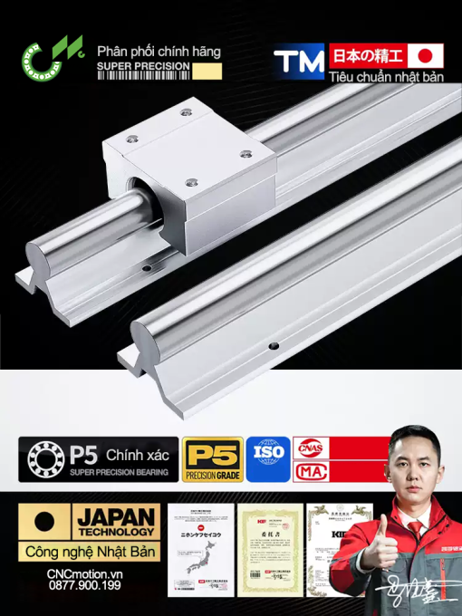 Có, CNC Motion nhận cắt ray SBR theo yêu cầu (0.5m – 3m).