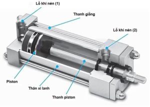 Xi lanh khí nén chuyển đổi năng lượng khí nén thành chuyển động tịnh tiến để kẹp, đẩy, gạt, nâng hạ. Cấu tạo gồm thân xi lanh, piston & ty, phớt kín khí; ưu điểm là đáp ứng nhanh, an toàn và dễ bảo trì.