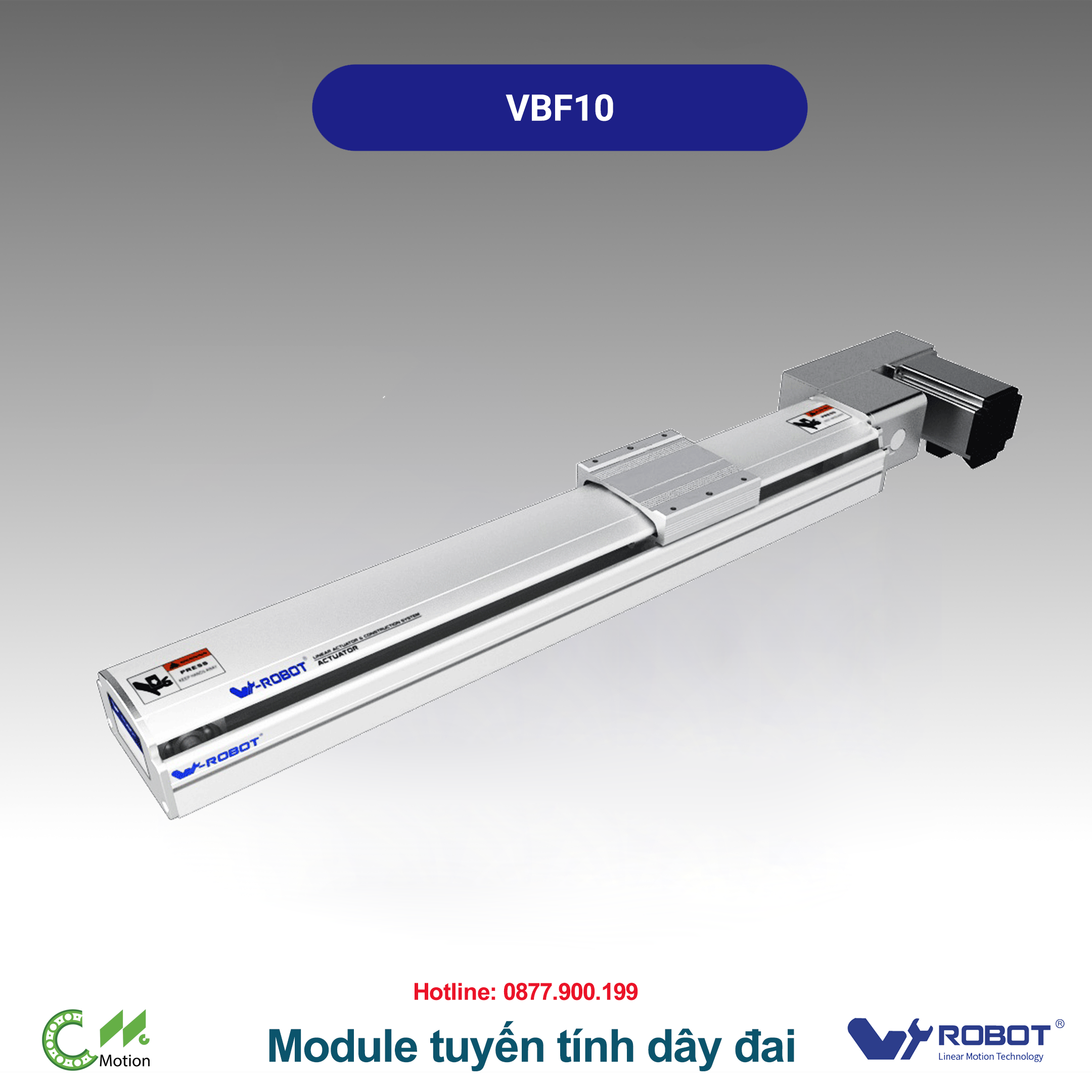 Website: cncmotion.vn • Đại lý W-Robot Việt Nam – tư vấn kỹ thuật & báo giá nhanh. *Thông số có thể thay đổi tùy hành trình và cấu hình servo; vui lòng đối chiếu catalog gốc để xác nhận. *VBF ưu tiên tốc độ & tải, trong khi VGTB ưu tiên môi trường sạch & độ ổn định bụi thấp.VBF Series – Module tuyến tính điện tích hợp - dây đai (Timing Belt Drive Linear Stage)