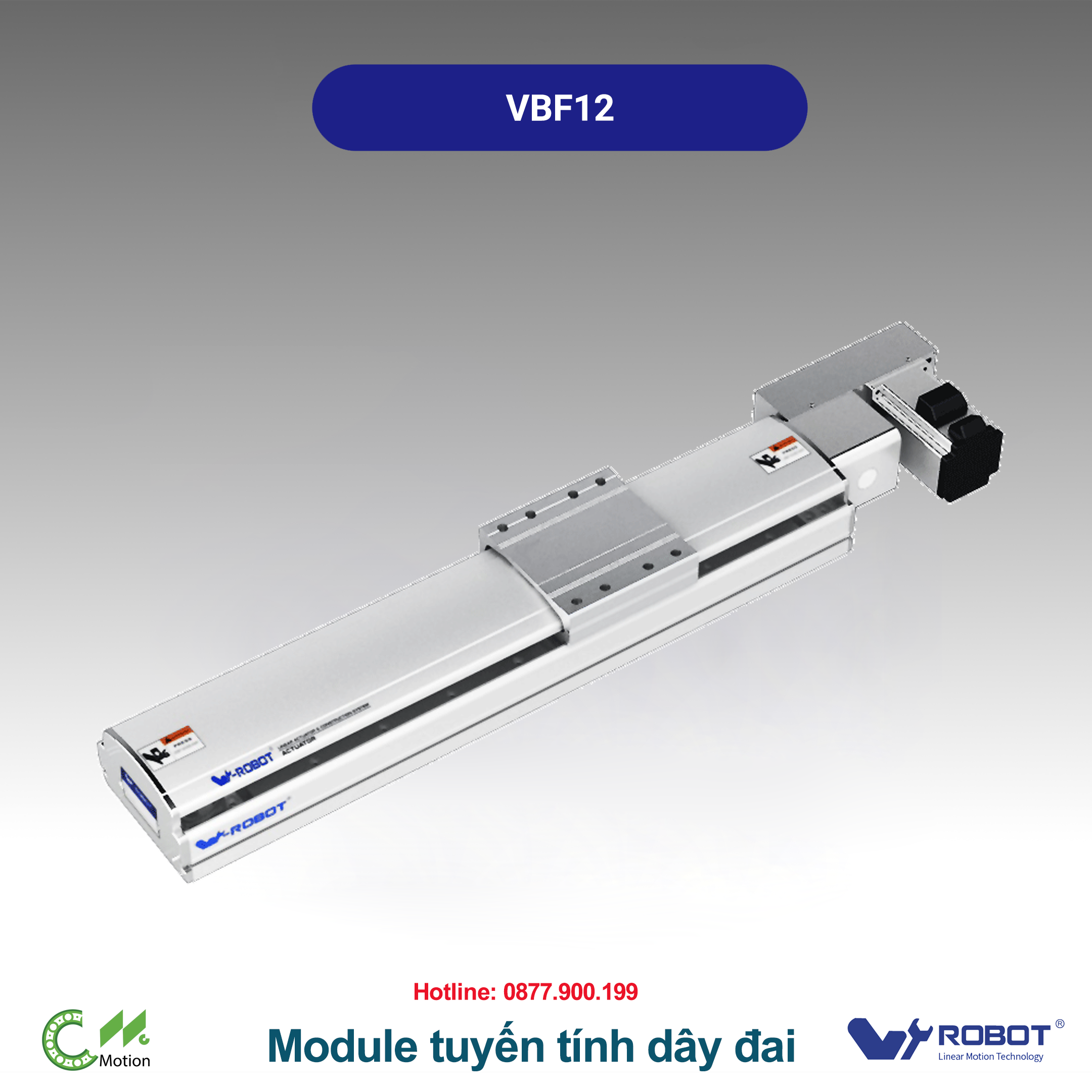 Website: cncmotion.vn • Đại lý W-Robot Việt Nam – tư vấn kỹ thuật & báo giá nhanh. *Thông số có thể thay đổi tùy hành trình và cấu hình servo; vui lòng đối chiếu catalog gốc để xác nhận. *VBF ưu tiên tốc độ & tải, trong khi VGTB ưu tiên môi trường sạch & độ ổn định bụi thấp.VBF Series – Module tuyến tính điện tích hợp - dây đai (Timing Belt Drive Linear Stage)