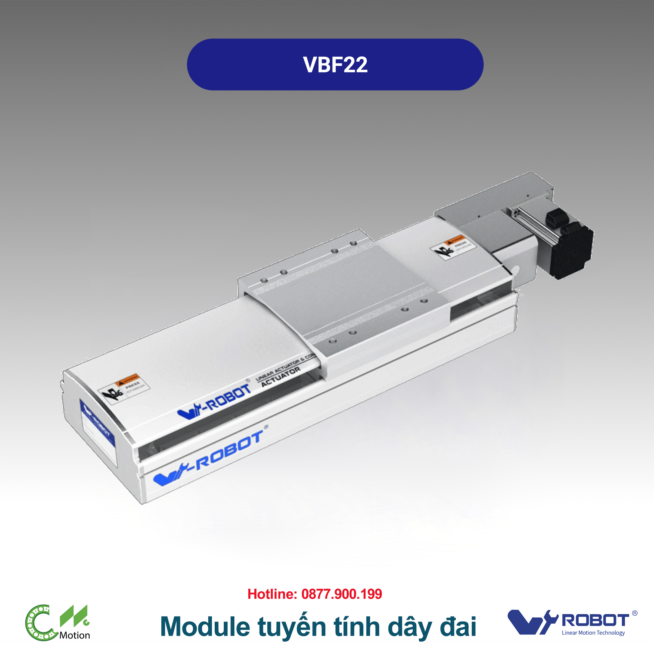 Website: cncmotion.vn • Đại lý W-Robot Việt Nam – tư vấn kỹ thuật & báo giá nhanh. *Thông số có thể thay đổi tùy hành trình và cấu hình servo; vui lòng đối chiếu catalog gốc để xác nhận. *VBF ưu tiên tốc độ & tải, trong khi VGTB ưu tiên môi trường sạch & độ ổn định bụi thấp.VBF Series – Module tuyến tính điện tích hợp - dây đai (Timing Belt Drive Linear Stage)
