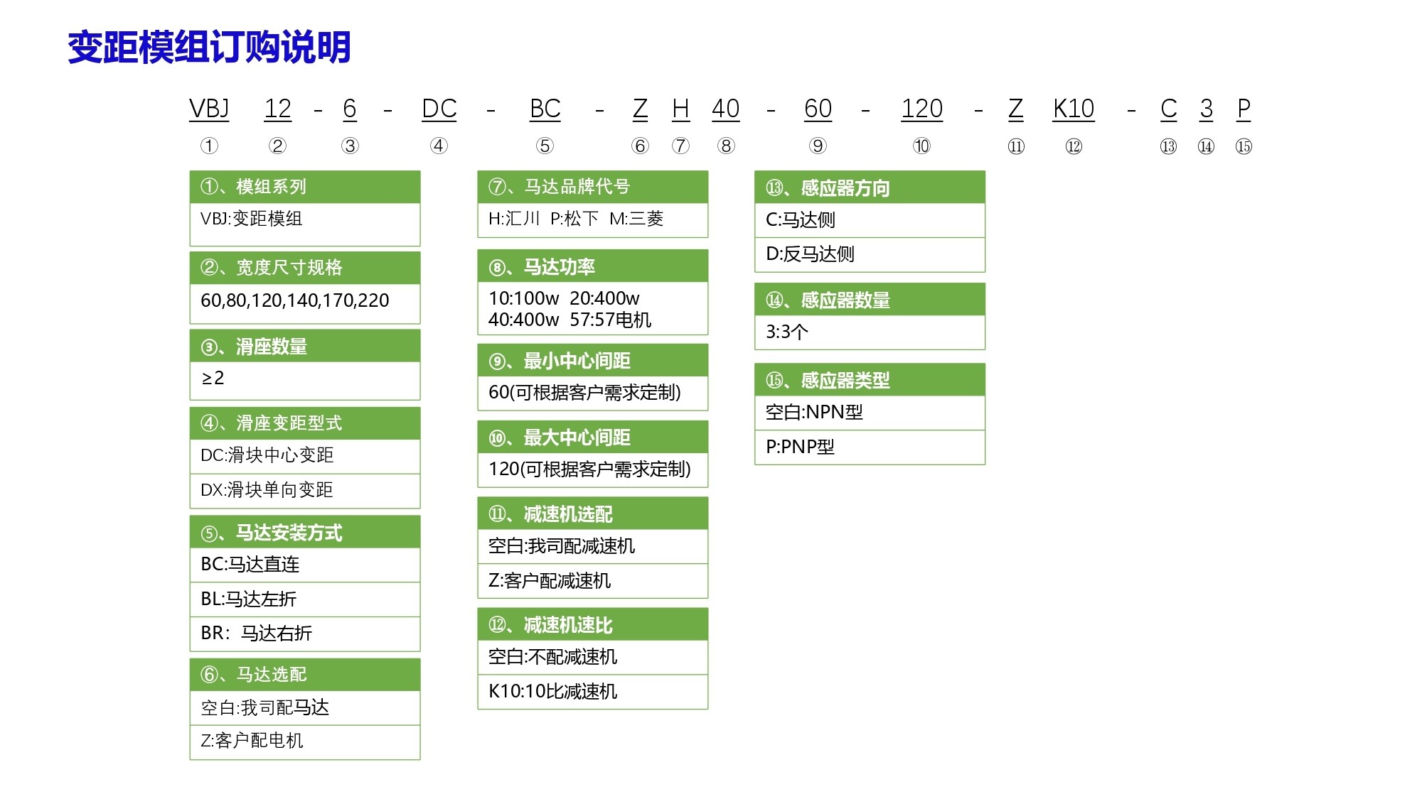 VBJ6 — L30 — N6 — P60–200 — R — ZP40B — C3 → Dồn/giãn bao bì nhẹ tốc độ cao.VBJ14 — L45 — N8 — P100–320 — L — ZP50B — C4 → Pick & place đồng bộ 8 điểm.VBJ22 — L50 — N10 — P150–420 — R — ZP60B — C5 → Transfer khay/pallet lớn, phối hợp robot.Ứng dụng tiêu biểu của VBJ Series