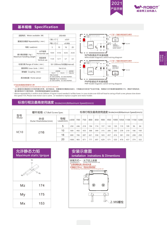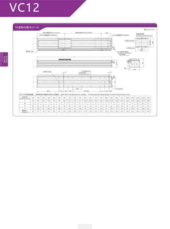 VC12 Module truyền động tuyến tính vít me Dòng VC (Chống xoắn, Tải trọng nặng)