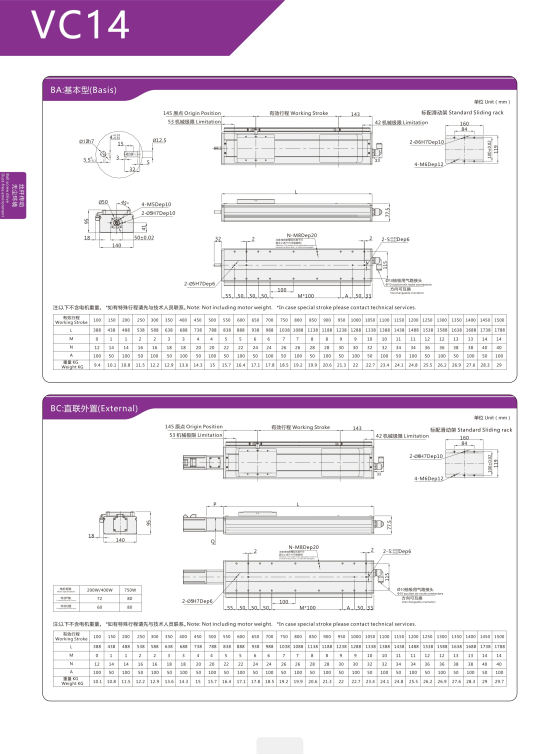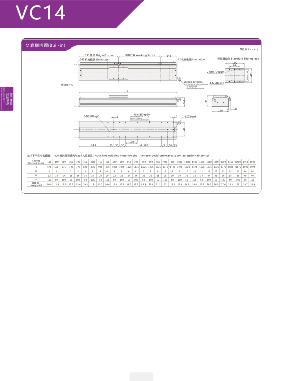 VC14 Module truyền động tuyến tính vít me Dòng VC (Chống xoắn, Tải trọng nặng)