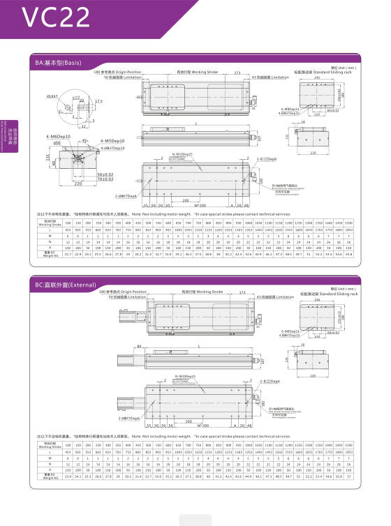 VC22 Module truyền động tuyến tính vít me Dòng VC (Chống xoắn, Tải trọng nặng)
