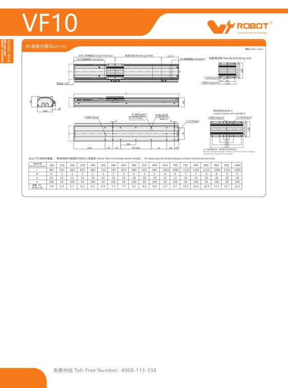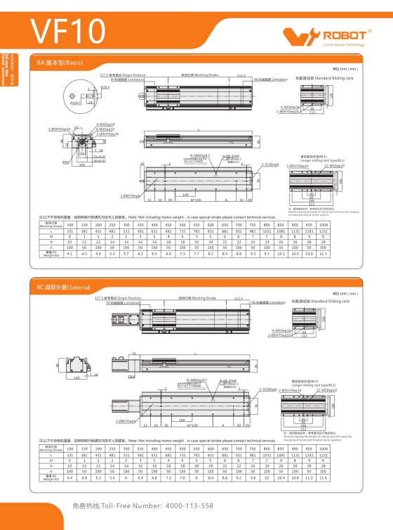 VF10 Module truyền động tuyến tính vít me Dòng VF (Chống xoắn)