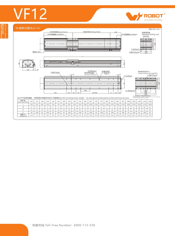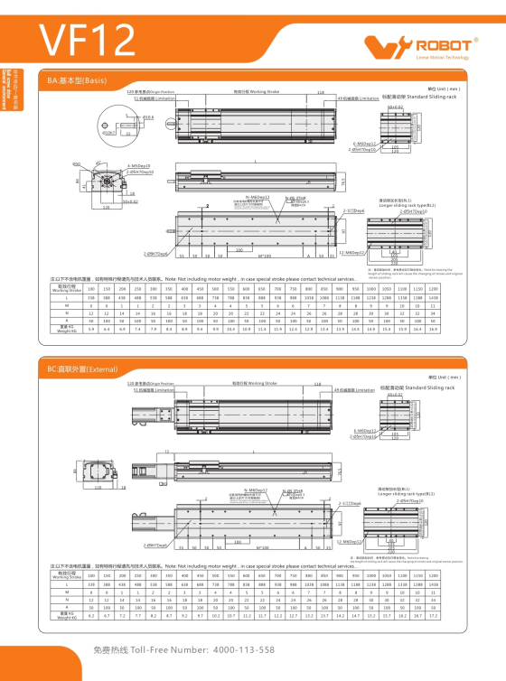 VF12 Module truyền động tuyến tính vít me Dòng VF (Chống xoắn)