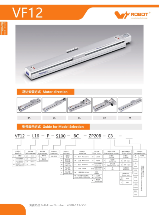 VF6N – L10 – P – S300 – BL – ZP10B – C3 – N → VF6, lead 10 mm, cấp C5, stroke 300 mm, motor trái, coupler ZP10B, 2 limit + home, cảm biến NPN.Cách chọn VF phù hợp