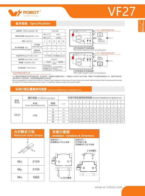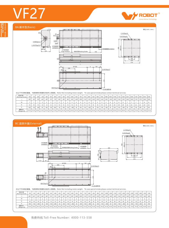 VF27 Module truyền động tuyến tính vít me Dòng VF (Chống xoắn)