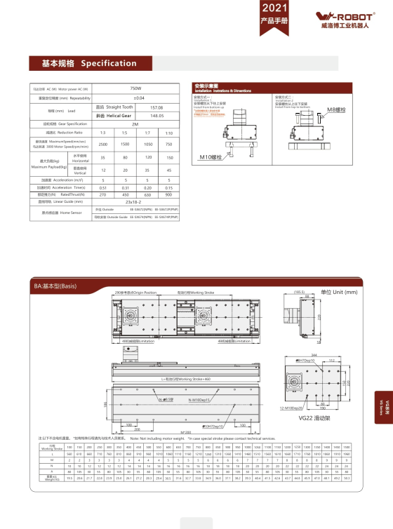 CNC Motion Việt Nam – Đại lý W-Robot: tư vấn chọn model, dựng bản vẽ, báo giá nhanh trong ngày. *Hành trình có thể tùy biến theo yêu cầu nhờ cấu trúc modular. Thông số tải mang tính tham chiếu khi lắp ngang với gá đặt đúng kỹ thuật. VG17 là lựa chọn phổ biến để dựng trục X/Y của robot gantry nhờ cân bằng tốt giữa hành trình, tải và giá thành. *Chọn model theo tải/độ cứng yêu cầu, hành trình, mô-men lật của đồ gá và yêu cầu chu kỳ. Lưu ý an toàn: luôn lắp chặn cơ khí hai đầu; cấu hình giới hạn mềm trong PLC/drive; cài E-stop & công tắc an toàn.VG Series – Module tuyến tính truyền thanh răng & bánh răng cho hành trình dài & tải nặng