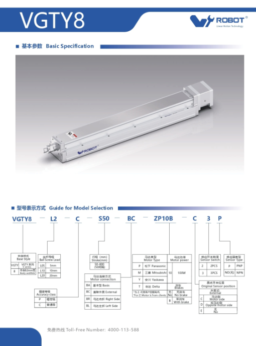 VGTY8 — L[05|10|20] — [C7|C5] — S[50–800] — [BA|BC|BL|BR] — ZP[coupler] — [No/With brake] — [Sensor position] — [2|3] — [PNP|NPN]Giải thích từng thành phần