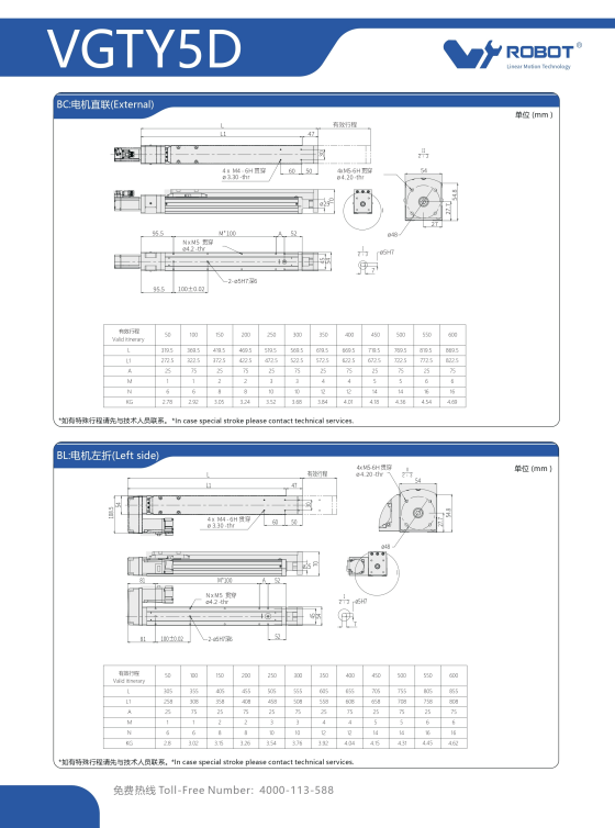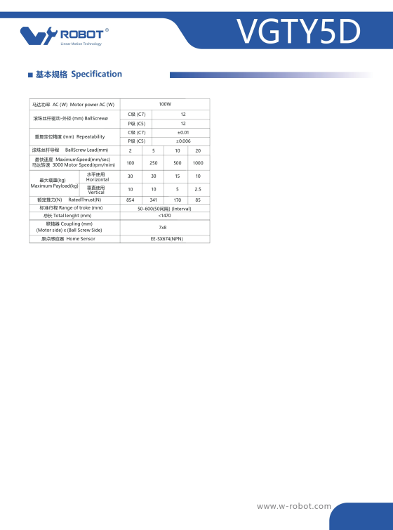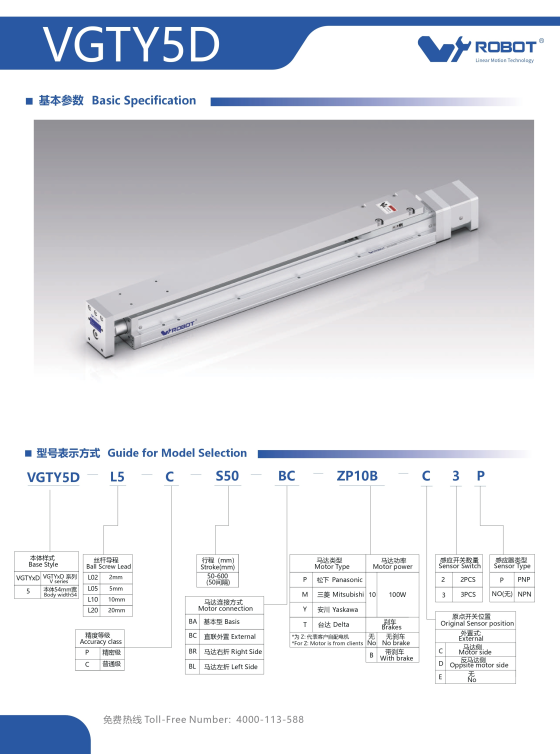VGTYD5 Module truyền động tuyến tính vít me Dòng VGTYD (Mỏng nhẹ, Lực đẩy cao)