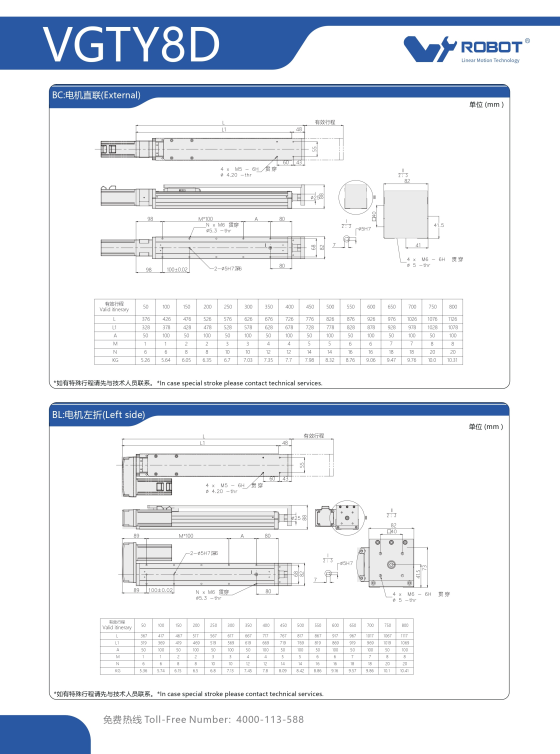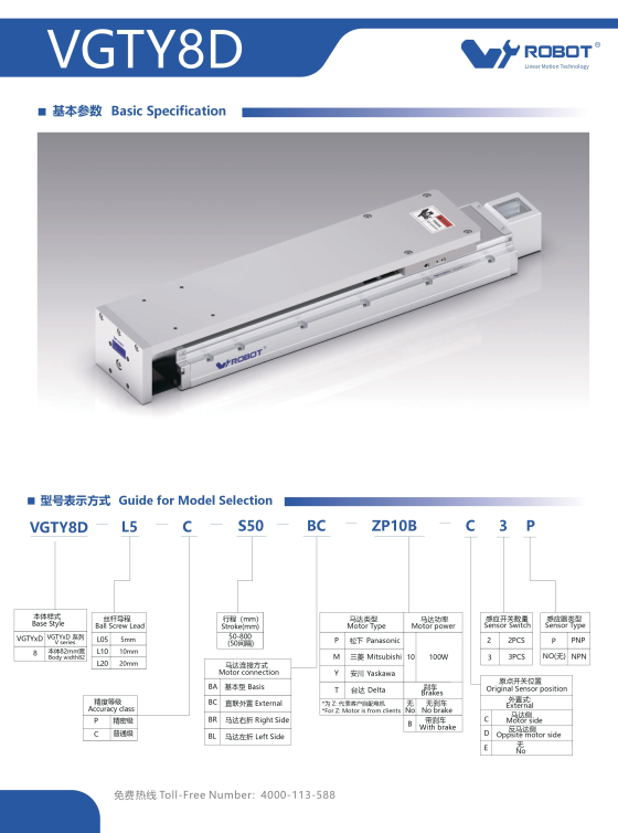 VGTYD8 Module truyền động tuyến tính vít me Dòng VGTYD (Mỏng nhẹ, Lực đẩy cao)