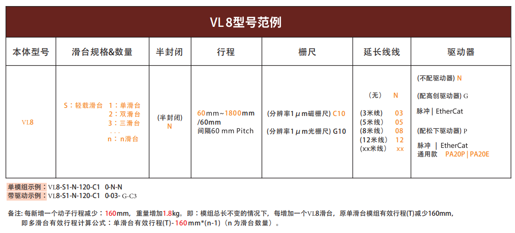 VL8 Động cơ tuyến tính Dòng VL (Bộ truyền động động cơ tuyến tính bán kín)