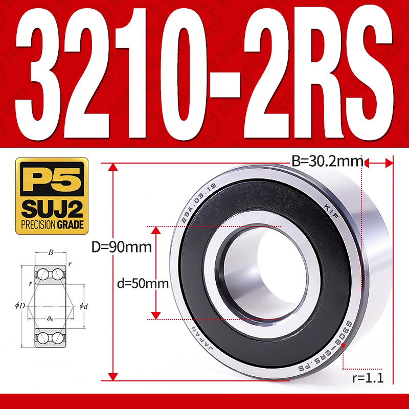 Vòng bi - bạc đạn 3210-2RS (Phớt cao su - 50*90*30.2 mm)