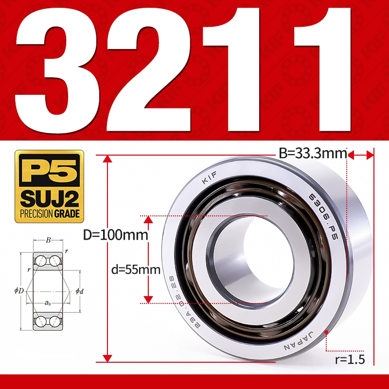 Vòng bi – bạc đạn 3211 (Không phớt – 55*100*33,3 mm)