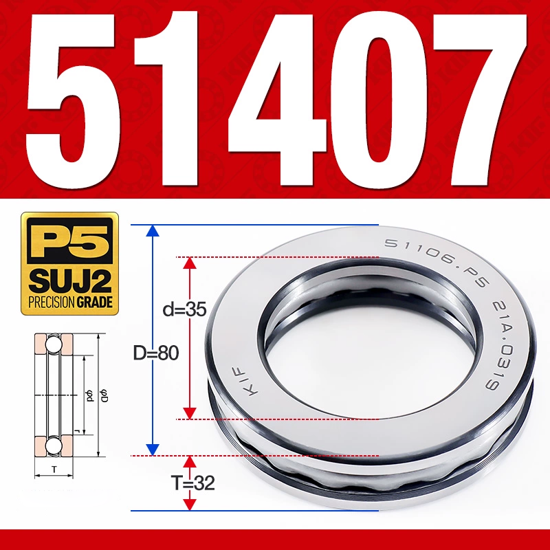 Vòng bi – bạc đạn 51407 (Chặn trục – 35*80*32 mm)