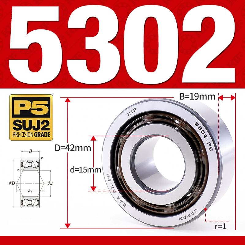 Vòng bi – bạc đạn 5302 (Không phớt – 15*42*19 mm)