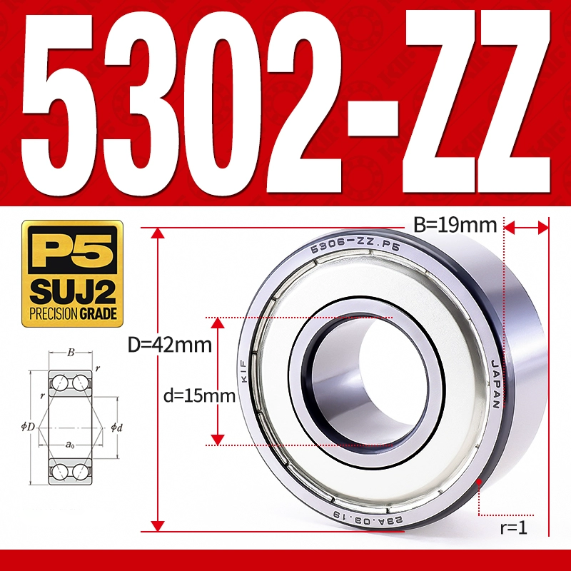 Vòng bi – bạc đạn 5302-ZZ (Phớt kim loại – 15*42*19 mm)