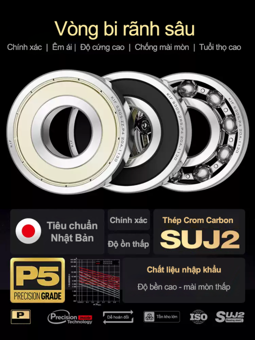là nhóm vòng bi thông dụng nhất trong công nghiệp: tốc độ cao, chạy êm, tải kính tốt và chịu được tải dọc trục hai chiều ở mức vừa.