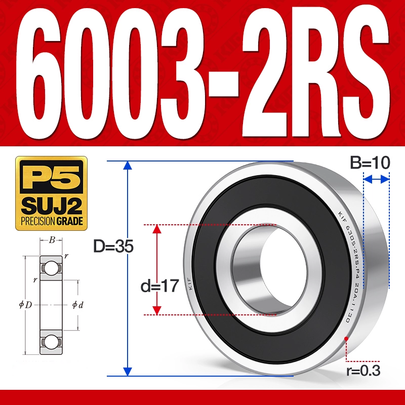 Vòng bi – bạc đạn 6003-2RS (Phớt cao su – 17*35*10 mm)