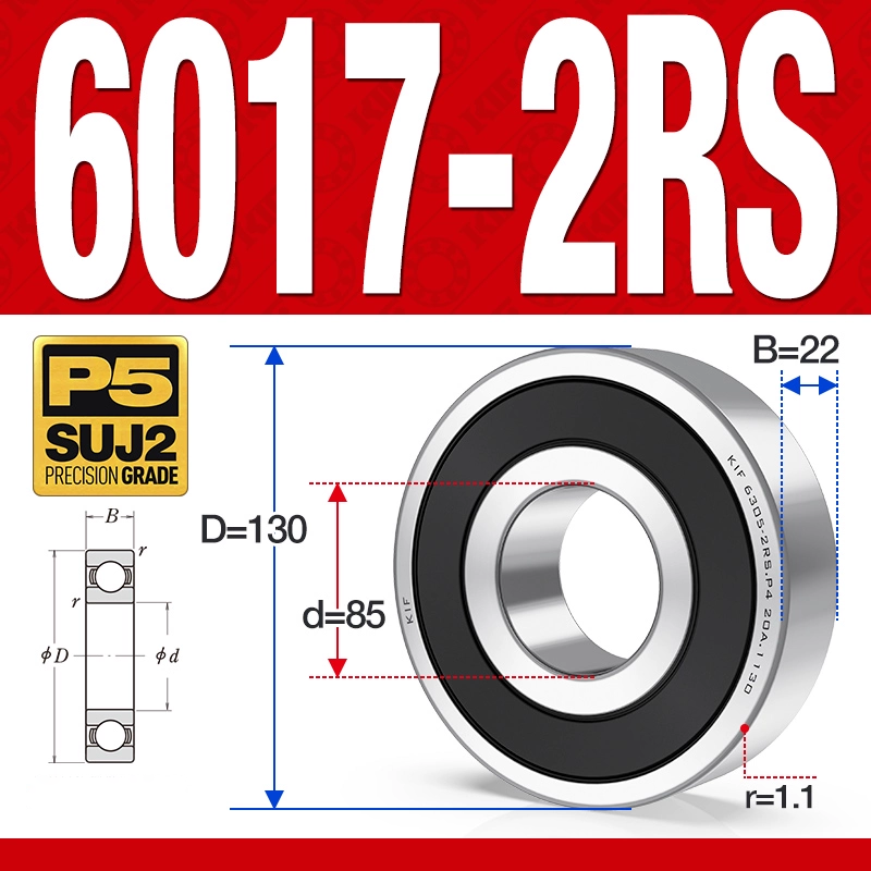 Vòng bi – bạc đạn 6017-2RS (Phớt cao su – 85*130*22 mm)