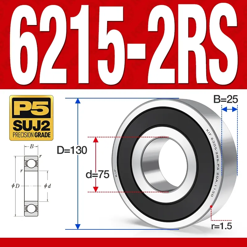 Vòng bi – bạc đạn 6215-2RS (Phớt kim loại – 75*130*25 mm)