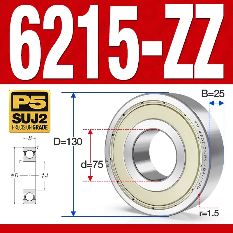 Vòng bi – bạc đạn 6215-ZZ (Phớt cao su – 75*130*25 mm)