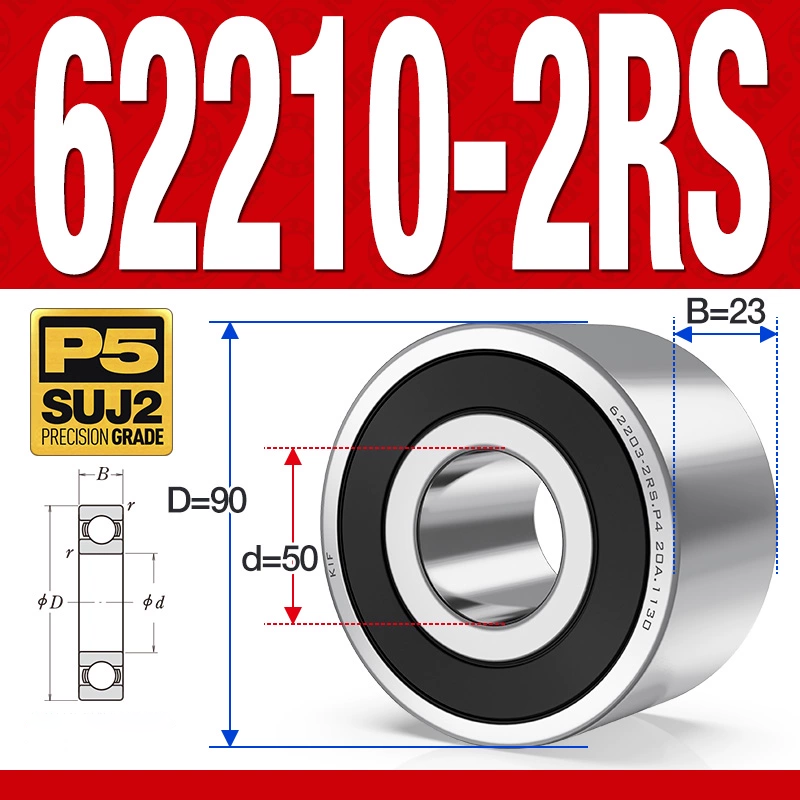 Vòng bi – bạc đạn 62210-2RS (Bi cầu 2 dãy – Phớt cao su – 50*90*23 mm)