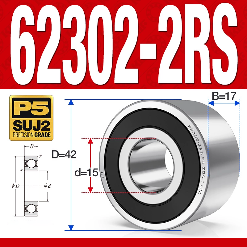 Vòng bi – bạc đạn 62302-2RS (Bi cầu 2 dãy – Phớt cao su – 15*42*17 mm)